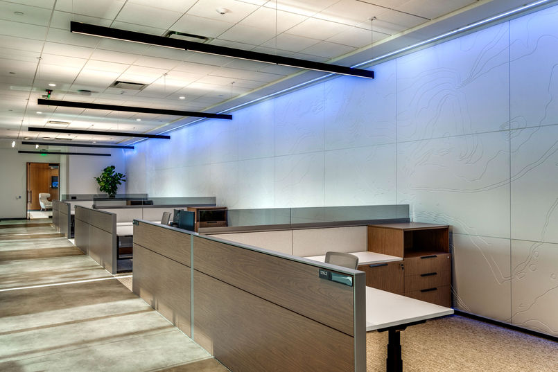 Textured Wall Installation featuring a custom topographic pattern of the nearby Katy Trail